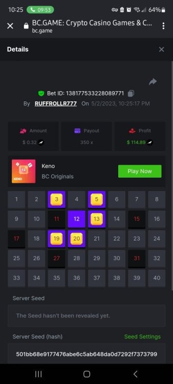 $2,500 Prestige Keno Multiplayer Challenge #45