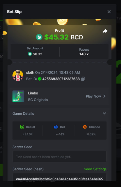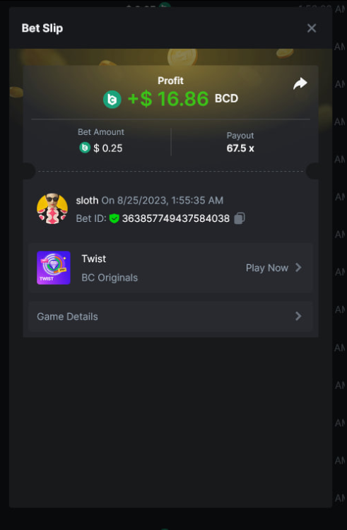 Total Points 30/30 EASY 1 https://bc.game/#/sd/11VO77GATVCCXF 2 https://bc.game/#/sd/11VO36FOYPH48V 3 https://bc.game/#/sd/11VKFQKFWOAMU7 4 https://bc.game/#/sd/11VKM1H288HRNB 5 https://bc.game/#/sd/11VKG5J0NO13JB 6 https://bc.game/#/sd/11VKLQZGL749P7 7 bet id 2388541117525266478 8 https://bc.game/#/sd/11VKH3DCZZR72Z 9 https://bc.game/#/sd/11VKHRDODKPPY3 10 Both done. MEDIUM 1 https://bc.game/#/sd/11VKEFPNPAVZIZ 2 https://bc.game/#/sd/11VKDDJO482EBN 3 https://bc.game/#/sd/11VKE9CI6RTUE7 4 bet id 2388491552407298304 5 https://bc.game/#/sd/11VJN7D9T73JFR 6 https://bc.game/#/sd/11VKERZ2NQWVER 7 * There is a problem with blackjack bet slips. all of the bets in history shows as 0 value in bet slip.blackjack hand is visible at bet slip game info ss .i also added ss of bill showing the bet with game id. bet is 2 bcd. Thank you https://bc.game/#/sd/11VOQRXMFX4X27 8 https://bc.game/#/sd/11VLQJAKYSW9P7 9 https://bc.game/#/sd/11VLS5NLHTDLWB 10 https://bc.game/#/sd/11VLWDXNBYDIRB HARD 1 https://bc.game/#/sd/11VJO4ADTOF1NJ 2 https://bc.game/#/sd/11VMPUDVWNOGCN 3 https://bc.game/#/sd/11VMKBWDTF65NF 4 https://bc.game/#/sd/11VOIUG63W4GGV 5 https://bc.game/#/sd/11VO9PCVEW7R4B 6 https://bc.game/#/sd/11VOO6VJNW78Y3 7 https://bc.game/#/sd/11VMKUB6AK9HJ7 8 https://bc.game/#/sd/11VODUXB33W0GV 9 https://bc.game/#/sd/11VOH4GG3LZ55Z 10 bet id 2385379590152524000