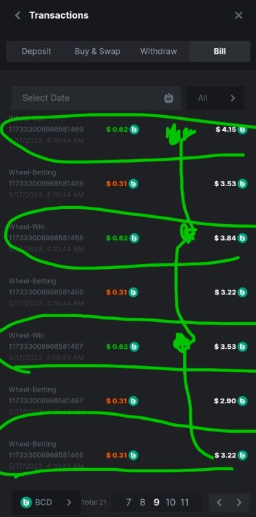 7. Hi, I lost my bet of consecutive orange x3, therefore I can't submit links due to page limit of showing only 50 bets history, but I have my bill of transaction. I was able to get 3x oranges when balance went down to 3.22$ @ 0.31$ min bet. 3.22+0.31$=3.53$ - sequence 1 3.53$+0.31$=3.84$-seq 2 3.84$+0.31$=4.15$-seq.3