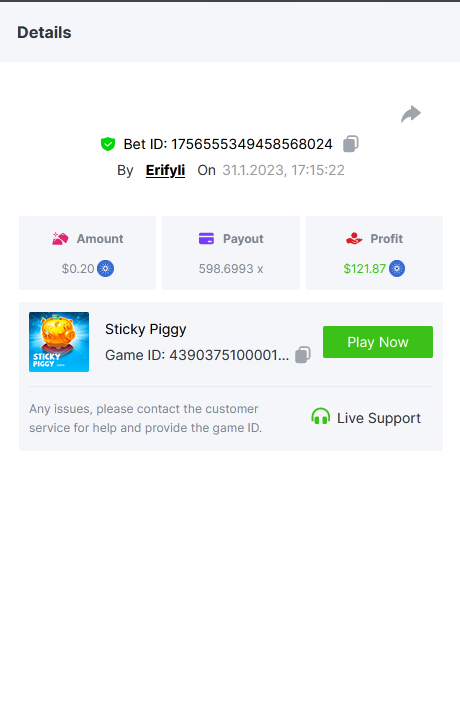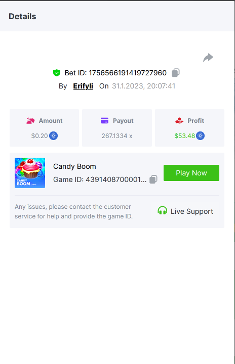 Bounty ? https://bc.game/#/sd/1123A7FXI98S9F The exact amount paid in the game was 50x but the multi shown is 0.05 higher than in reality. Not sure if this counts as bounty. https://bc.game/#/sd/1123L1X3SF7YTV https://bc.game/#/sd/111XF58ISYZR4J https://bc.game/#/sd/111X8MPZ776SYB https://bc.game/#/sd/111XAGX5V8YMMR https://bc.game/#/sd/1121WOEHI0AT5F https://bc.game/#/sd/111XKLL6U67THV