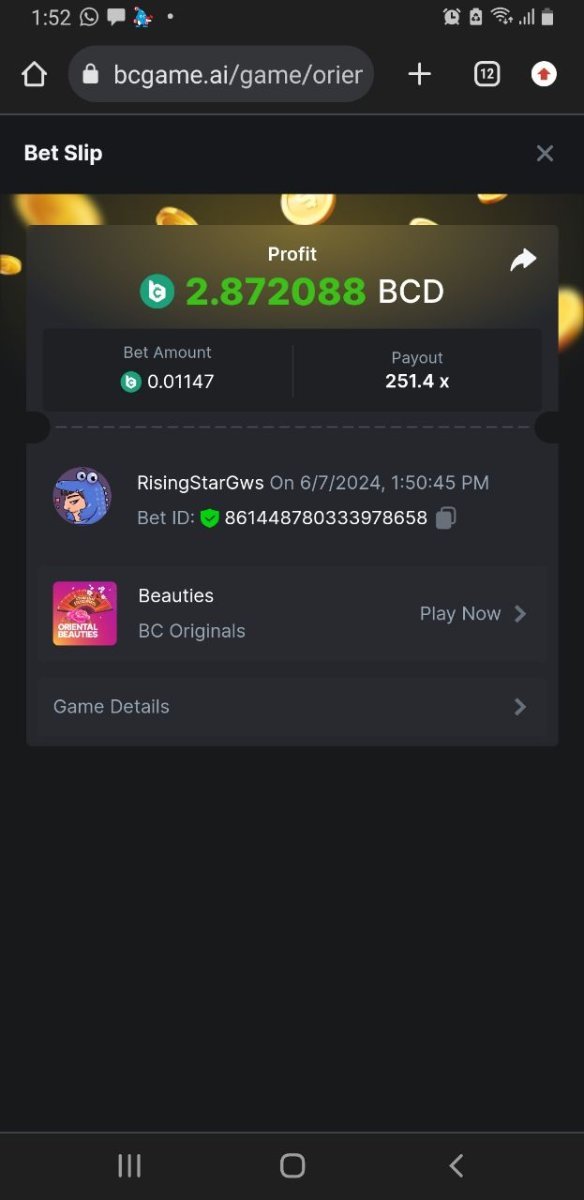 Moderator Giandreas Posted June 7, 2024 Moderator Share Posted June 7, 2024 Read Carefully Before Start To Hunt Forum Daily Challenges #624Hunt : Oriental Beauties Win the highest pay out Min Payout : 20x Min Level 10️Duration Starting : Now End time : 23.59 UTC Time How to Join? Make screenshot + paste your bet link + UID or Profile link Any coin, with min bet 0.01 USD is allowed (jb/bb/bcl not allowed)Reward Prizes 1st Place.....$7 BCD 2nd Place.....$5 BCD 3rd Place.....$4 BCD 4th Place.....$3 BCD 5th Place.....$2 BCD 🏵 Winners will be announcing next day after Roll Point! Link to comment Share on other sites More sharing options...